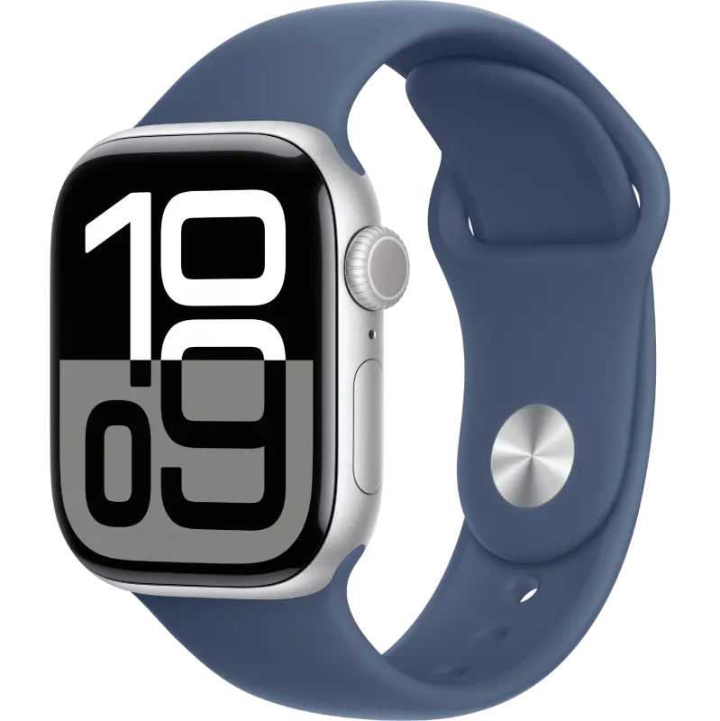 Apple Watch Series 10 46mm Aluminum Silver Case Denim Sport Band S/M